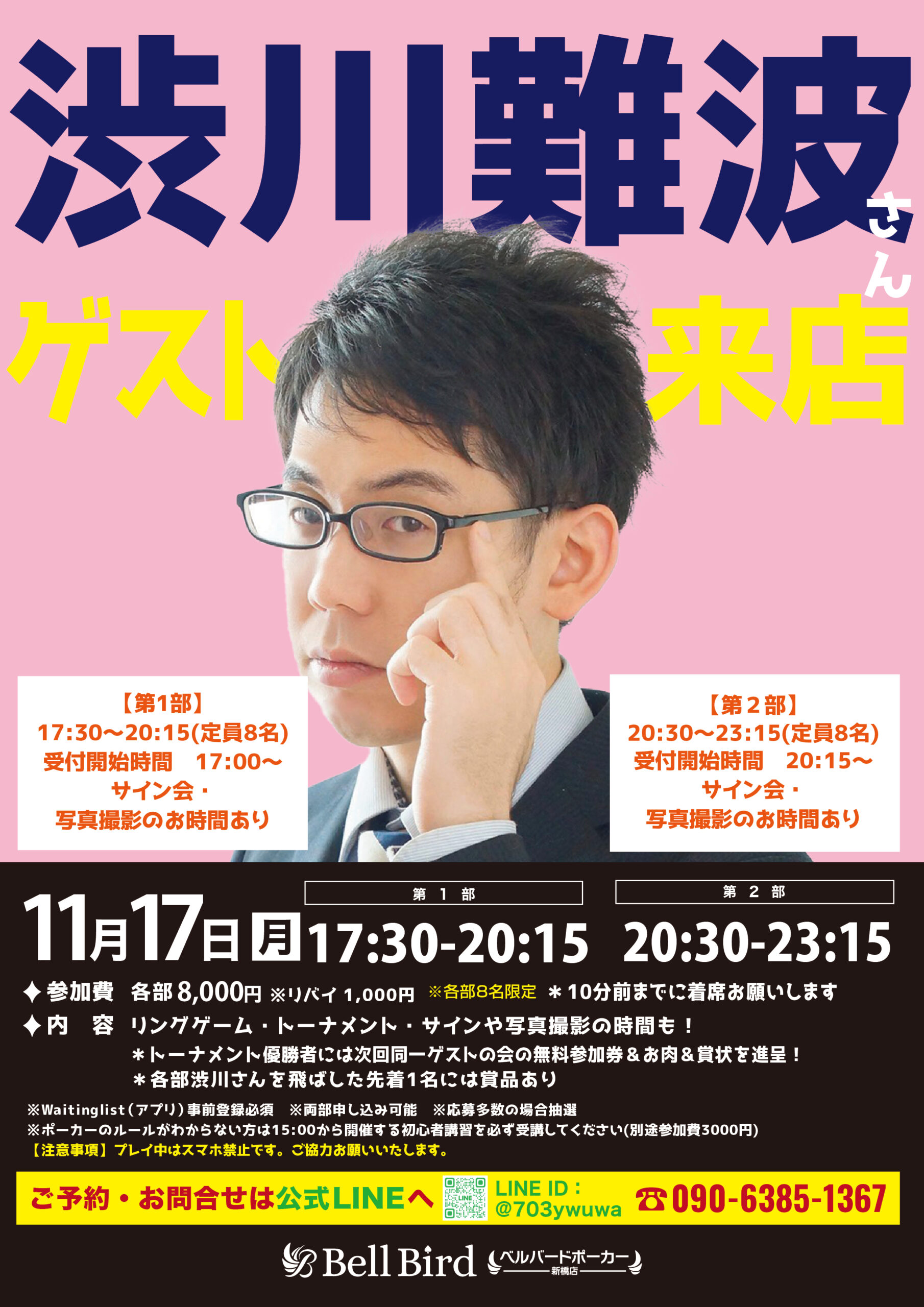 日本プロ麻雀協会 渋川難波プロがベルバードポーカー店にゲストとしてご…